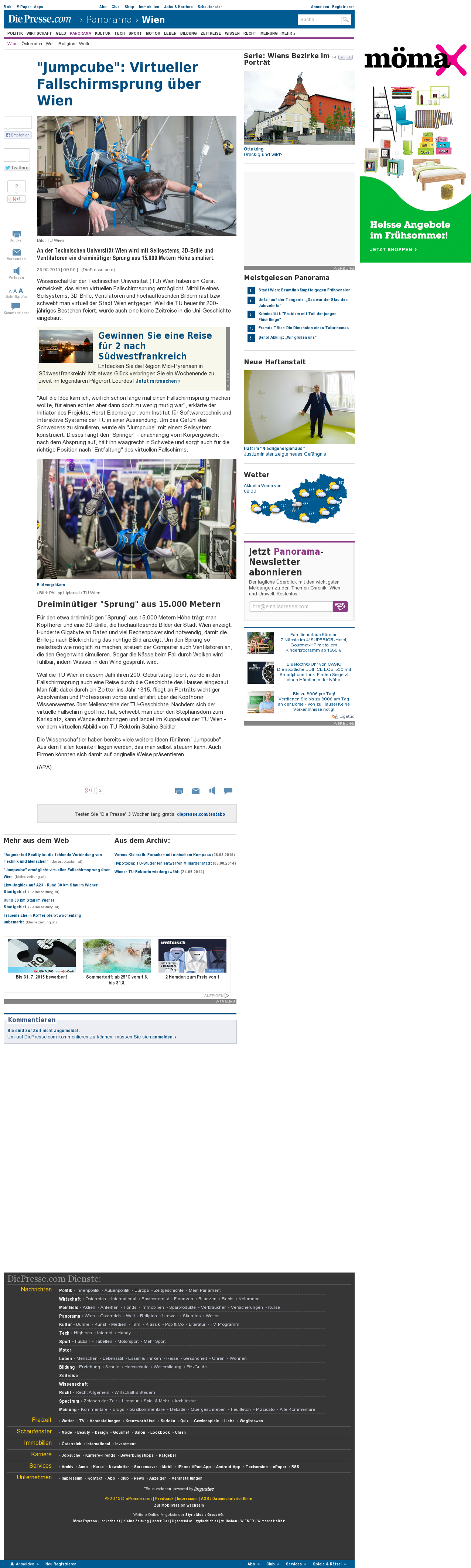 | Die Presse | Jumpcube: Virtueller Fallschirmsprung über Wien May 29, 2015 | VirtualJumpSimulator | Screenshot |
