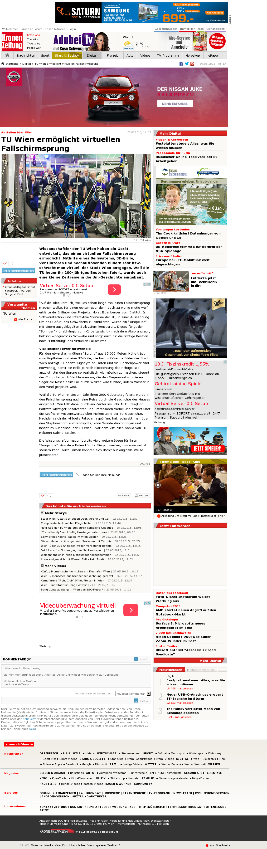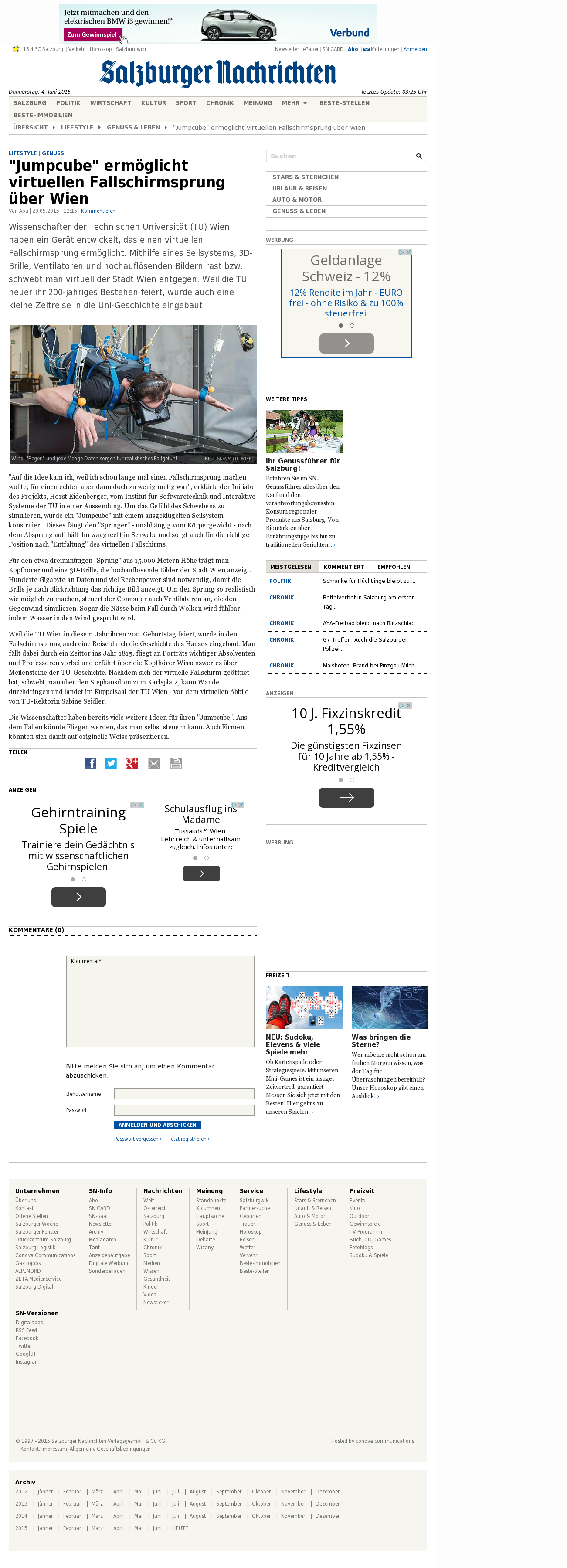 | Salzburger Nachrichten | "Jumpcube" ermöglicht virtuellen Fallschirmsprung über Wien May 28, 2015 | VirtualJumpSimulator | Screenshot |