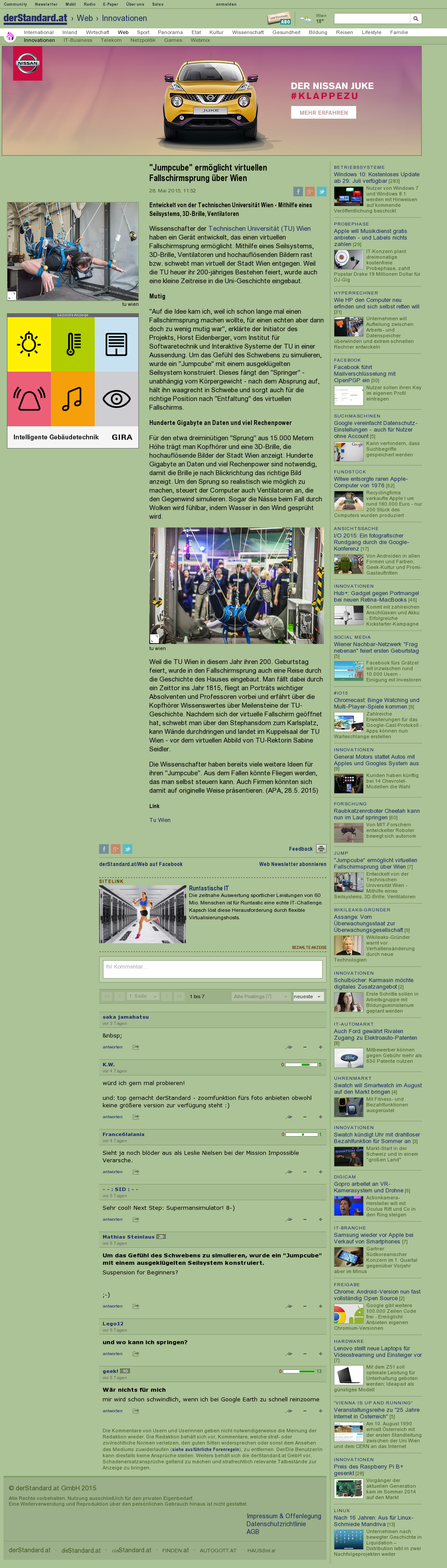 | Der Standard | Jumpcube ermöglicht virtuellen Fallschirmsprung über Wien May 28, 2015 | VirtualJumpSimulator | Screenshot |